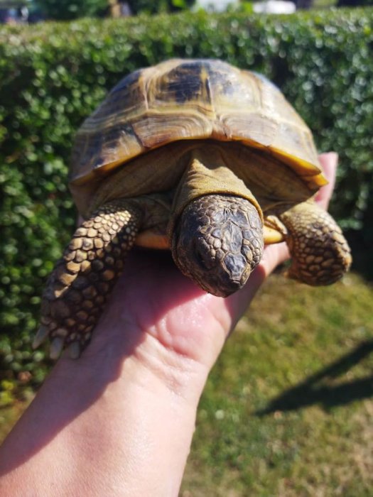 Dobrý den, máte želvu čtyřprstou (stepní) , Agrionemys horsfieldi (Testudo horsfieldi). Přesné stáří odhadnout nelze, jedná se ale o plně dospělou samičku které zjevně nic neschází. Takže jen tak dál.👍