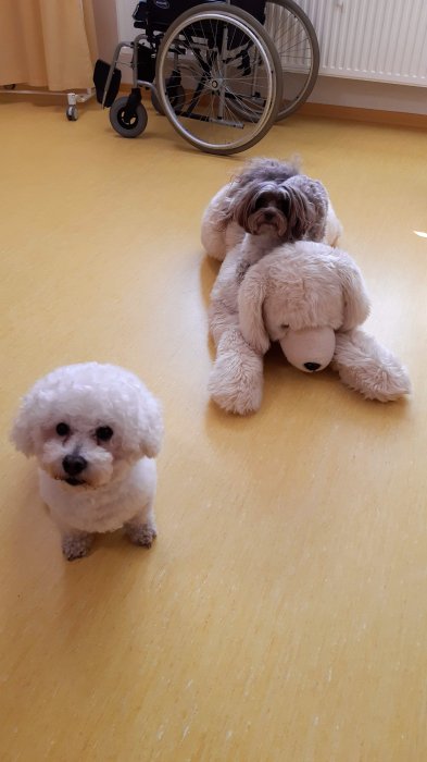 něco jiného je polohování (a tedy prohřívání) pacienta a něco jiného mít psa jako pozitivní prvek, který má přinést úlevu psychickou či má funkci rehabilitační (česání, hlazení, podávání pamlsků…)