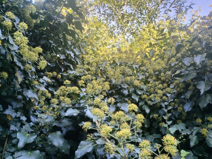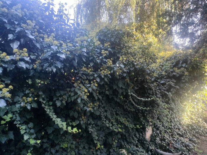 Musím se pochlubit naším břečťanem. Bzučí to tu, jak v úle.