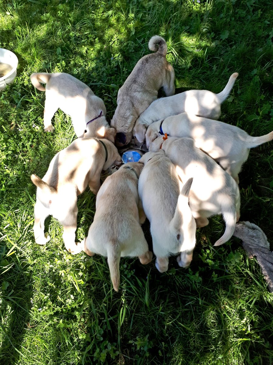 Tak náš momentální počet je devět😀 včetně malýho mopsle a buldočky ,a včetně nerudnýho dědka a krutopřísný báby🤣 uvidíme,jestli se dědek letošních štěňat dožije. Každopádně volnej pohyb se smečkou po velký zahradě je podle mě pro každý štěndo ten nejlepší základ do života,protože tuhle školu a prostředí žádnej člověk a ohrádka s atrakcema nenahradí