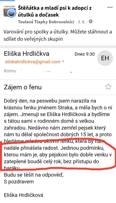 Taky proto mě tak neskutečně vytáčí ten poslední lynč, viz screen toho mejlu. I když slečna chtěla psa jen na zahradu a bez vstupu do domu, tak odchodem od Denisy si prostě každej pes polepší..