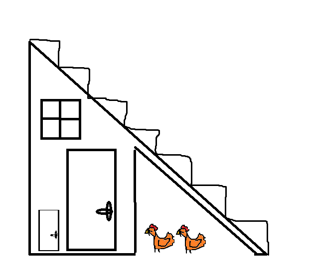 No a to je právě ten problém. Todle já asi sama nepostavim. To bysem ho už musela otravovat a to já chci jen v případě nezbytně nutným. Todle už je statika. jako řešení dobrý, to ne že ne. a háček je ešče v tom, že by to byl obří kurnik. protože od stěny k těm schodům je asi hodně moc místa. To prozkoumám, to jo, ale hlavně tohle fakt asi nepostavim.