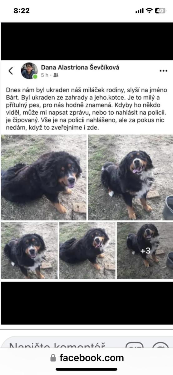 Nevím, kam bych to dala, tak zkusím sem, jedná se o ukradeného pesana…Čechy u Přerova.