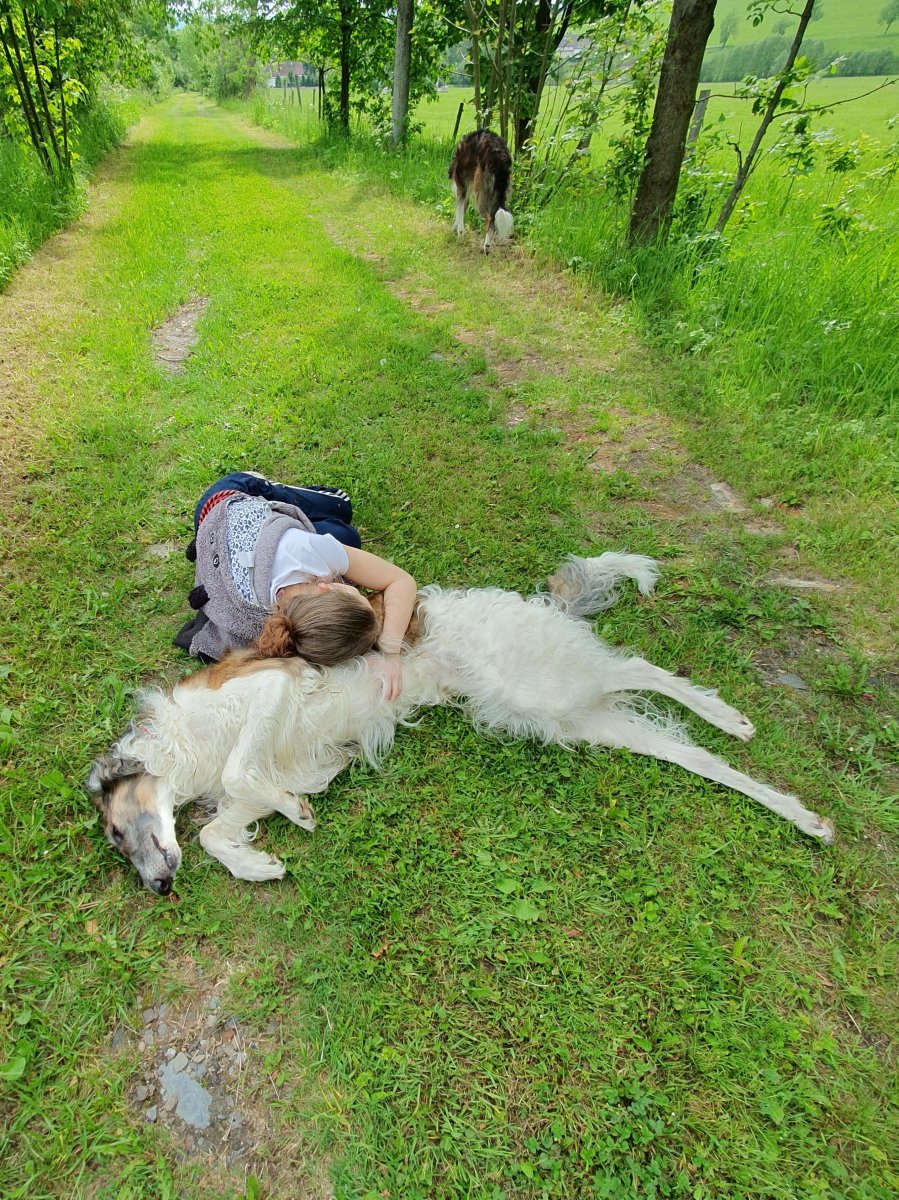 A k tomu objímaní.. Taky mám pocit, že o nej psi moc nestojí. Gučák je mazel největší,chce hladit a drbat a masírovat, a to i od cizích , ale když si přes nej dám ruku nehladící, dá mi pusu a odejde. Dorouš hodně objímá a dává pusinky, ale nesnese, když ho někdo cizí chce pohladit seshora po hlavě, takovej nevychovanec to má navždy prohraný, protože ruka se má přeci dávat dolů a dlaní nahoru ;). Fram se moc nemazlí, zato je člověku pořád nablízku, položí si hlavu do klína nebo se opře, a tomu objímaní nebo to, že si na něj člověk položí hlavu nevadí a spokojeně usne, ale můžou to dělat jenom lidi jeho, od cizáků jde ve vší slušnosti pryč .