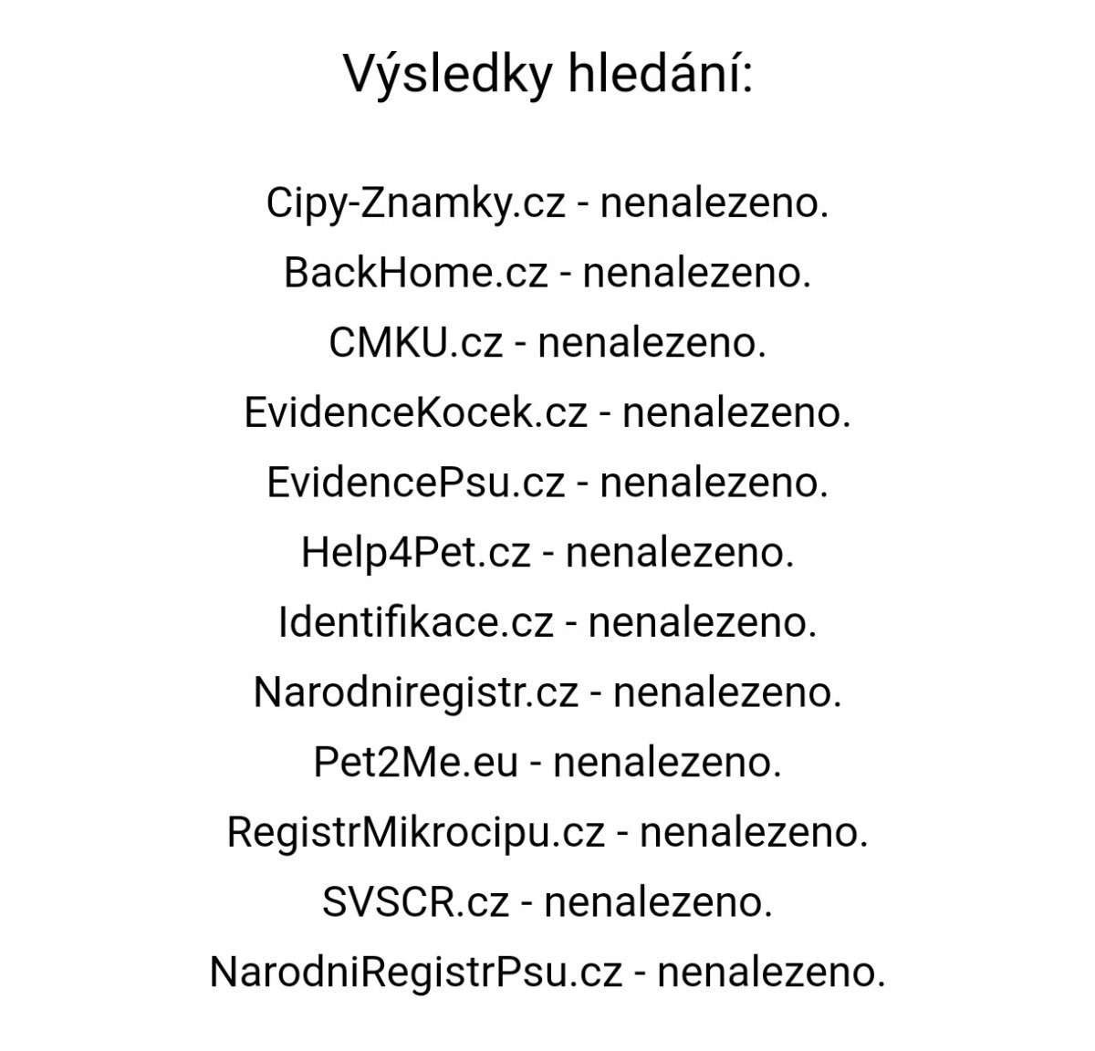 Je registrovaný v Tasso, v Německu, Petmaxx mi ho našel. A je tam hlášený jako pohřešovaný. https://www.tasso.net/Tierregister/Transponderabfrage Dá se tam rozkliknout dál… je jí 5 měsíců, proč by nemohla odejít ze zahrady?