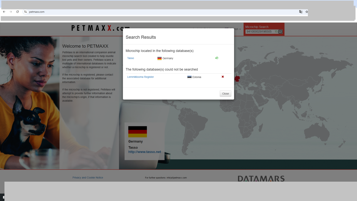 Je registrovaný v Tasso, v Německu, Petmaxx mi ho našel. A je tam hlášený jako pohřešovaný. https://www.tasso.net/Tierregister/Transponderabfrage Dá se tam rozkliknout dál… je jí 5 měsíců, proč by nemohla odejít ze zahrady?