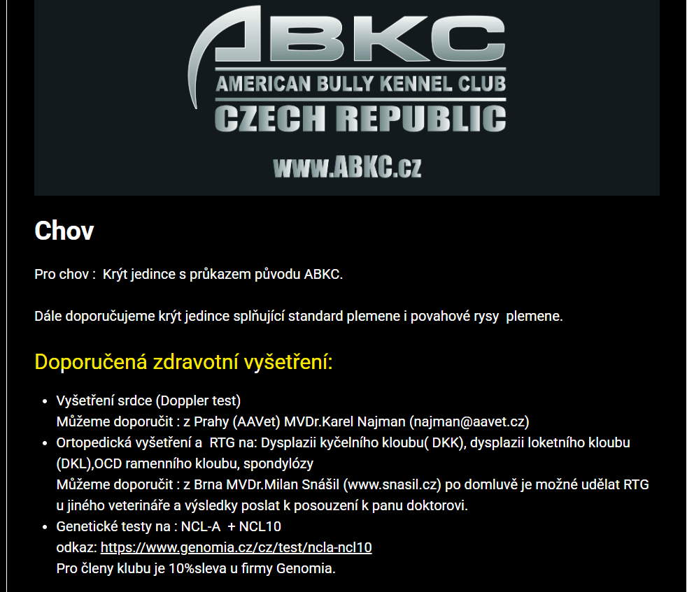 Vsechny zdr.testy jsou dobrovolne, certifikaty nikde nenejdete - jen poznamky na FB, jak jim hezky vychazi vsechny zdr. testy. V databazi vynechavaji i datumy narozeni. U vrhu velmi radi taky. Nedohledate nic…