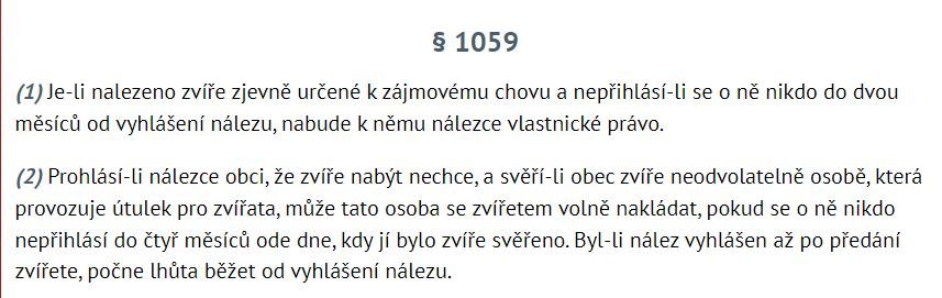 Ten kdo psa ( zvire) najde a necha si ho - musi to oznamit ( obci) a pak cekat 2 mesice, nez je jeho. Pokud preda psa obci/utulku/ komukoliv - bezi lhuta 4 mesice.