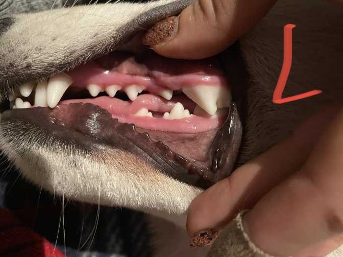 To je teda pech, někdo ze sourozenců feny řeší to samé, jak jsou na tom sourozenci rodičů atd? Taky na foto vidím zub navíc, že zrovna P1? Nechala bych feňuli dorůst, nekoukat jí do huby, ať se nestresujete. A pak ji třeba vzít na rtg, zda jde opravdu o nadbytecné tesáky.