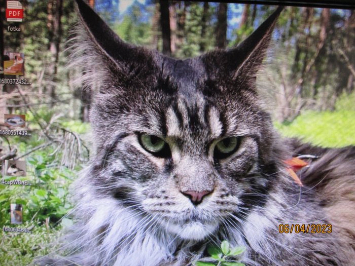 Tady je můj mladší kocour, kterého mám nyní jako tapetu na mobilu.