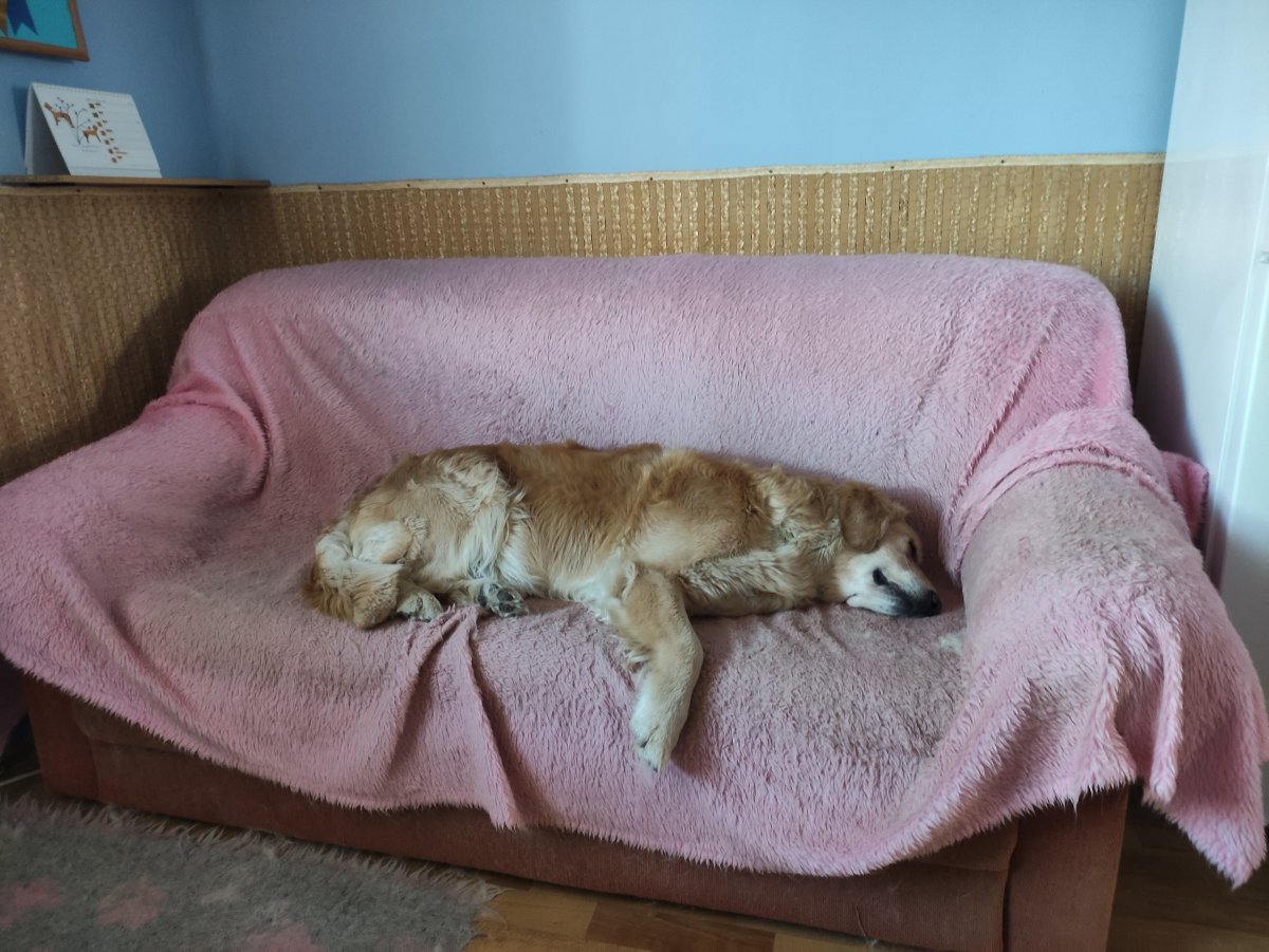 Tak jsem to spočítala, 4 pelechy xxl, psí gauč, dvě vetbedky,a pak podložky z pěnových dílů, které jsou před psím gaučem,aby to bábě neklouzalo,ale jsou taky využívaný na ležení. A v noci postel😄