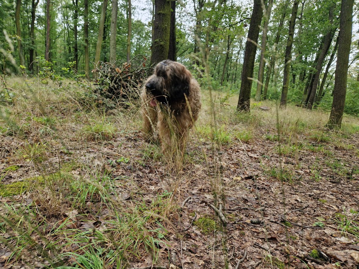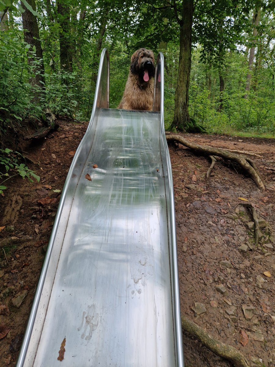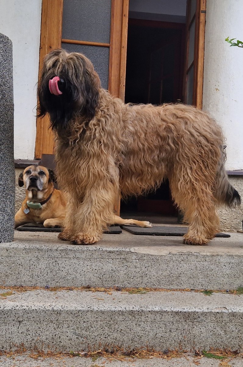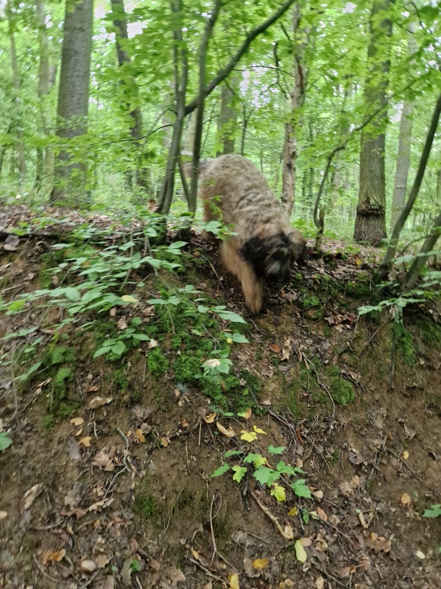 Je to duše rozvážná, něžná a odvážná, ale do sportu to asi nebude. Ale zase rád jezdí na skluzavce, bedivě mě střeží v lese a tuhle moc hezky a jemně přihnal ztracený jehně ke stádu. Ono se teda ukázalo, že tam to jehně nepatří, měli ho u maringotky jako domácího mazlíka.