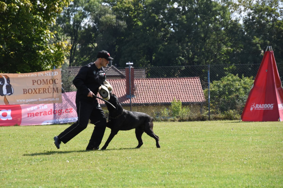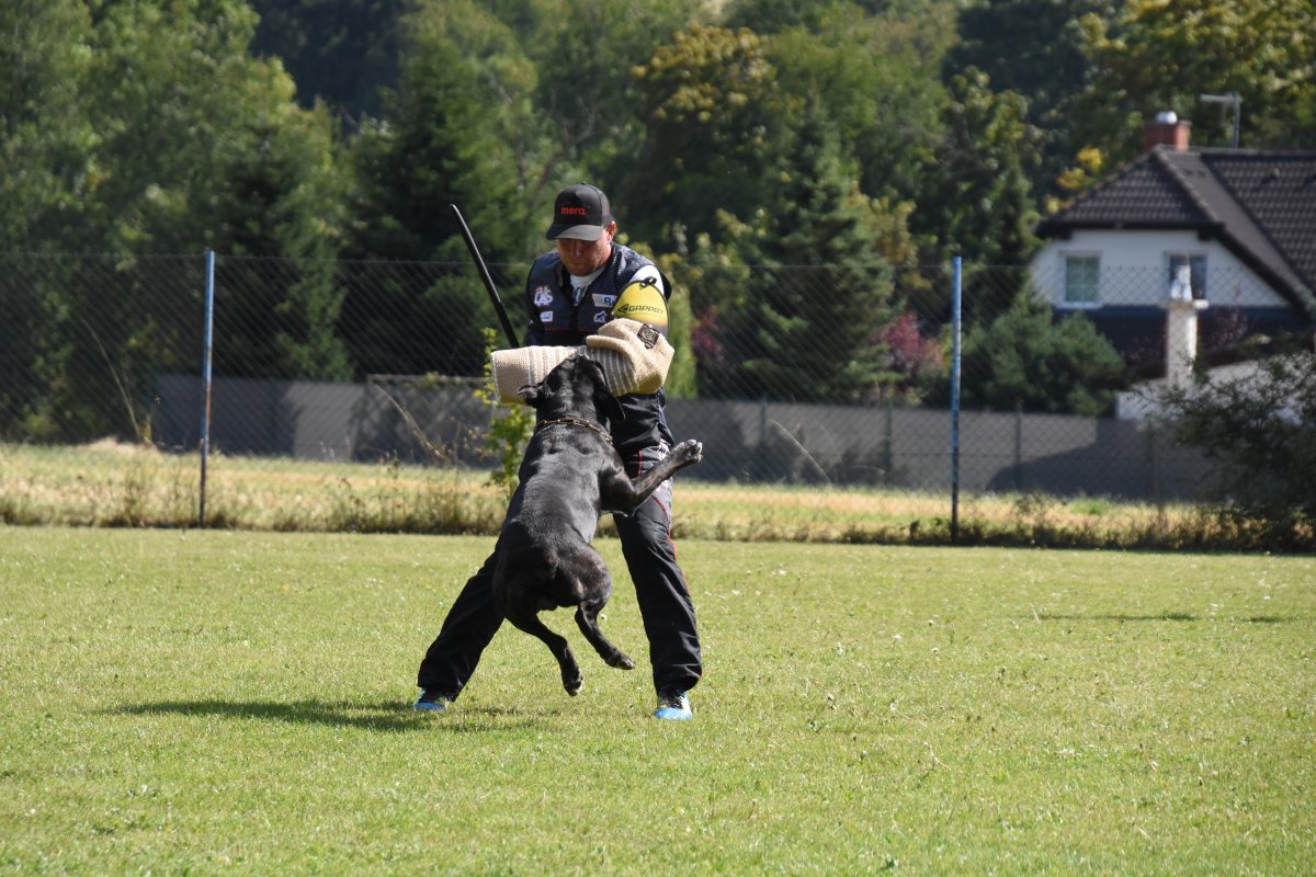 Při obranách pozoruje v úplným klidu ostatní psy, jenom když šel na plac jeho kamarád, otočil se, že poklidně překouše vodítko a že by mu šel pomoct.🤣