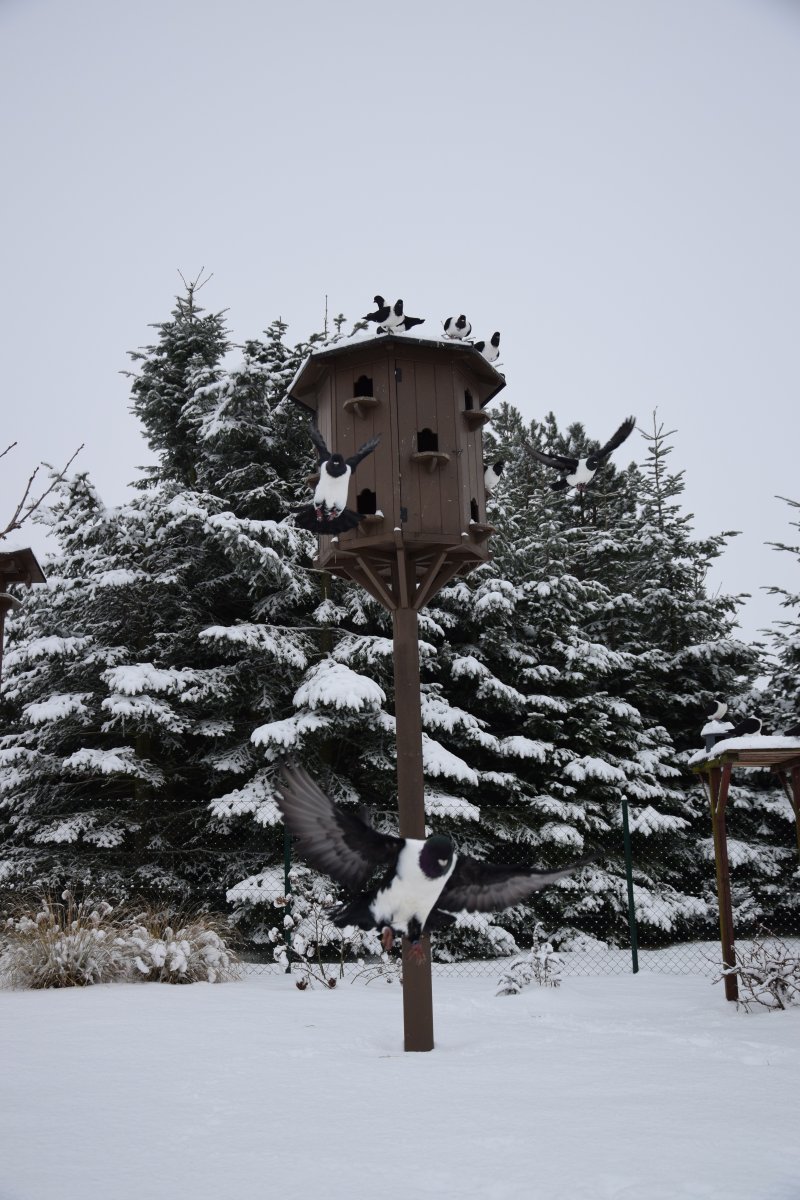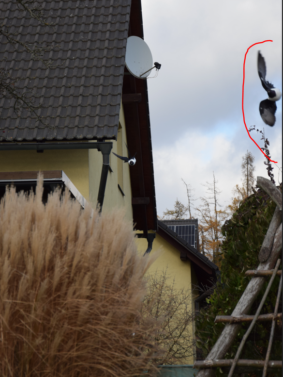 Zdravím, díky za další rady a užitečné informace k polaření. Přijímám i oprávněnou kritiku. Další "pokusy" s orientací pštrosů už letos nejsou v plánu, chtěl jsem jen vyzkoušet jestli má vůbec cenu o polaření uvažovat. Pokud bude na jaře čas, chuť a holubi přežijí zimu tak to možná zkusím. Zdá se, že i po generace v uzavřeném chovu držený holub se dá "zdivočit". Za 2 a čtvrt roku holubi udělali slušný pokrok. Když si vzpomenu na některé mé první holuby..... Jeden se doplácal na střechu skleníku, kde mu na mokré střeše podjela noha a aby nespadl, tak přímočarým "letem" (zatáčet neuměl a nahoru to taky nešlo) doplachtil, spíš dopadl, sousedům do okapu. Vylezl na hřeben střechy a strávil tam 24hodin, než ho hlad a žízeň donutili k návratu. Byl to pěkný holub, ale ne "lítací". Odchovu jsem se od něj nedočkal, na počátku zimy zmizel. Moji někteří holubi (první, druhá generace) už lítají jako blázni. Mladí "blbnou" tak, že když letí na střechu nebo zpět, letí schválně proti překážce např. zdi a těsně před ní to vytočí, aby nenarazili. Divím se, že si nesrazí hlavu. To se stalo jen jednou, koupená holubice to nevybrala a narazila do okapu. Na místě bylo po ní. Snažil jsem se toto jejich "blbnutí" vyfotil, ale moc se nedaří. Posílám jen pár nekvalitních fotek. V létě jsem prosil Raspice ať mi sem pošle nějaké pošťáky🙂, aby mi zase naučili pštrosy kroužit. Už to není třeba. Jak ustává hnízdění a nekrmím tak bohatě, začali zase sami kroužit nad domem což mi potvrdil i soused důchodce ... prý je vidí denně. Koupení holubi, mám ještě asi 3, nekrouží nikdy. Ať se vám daří.