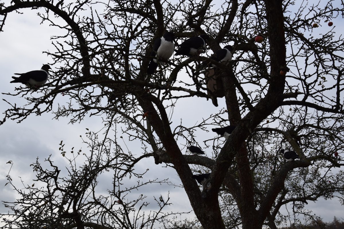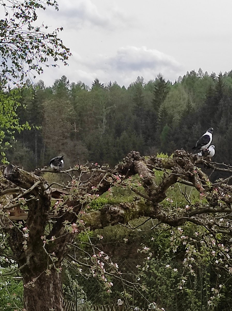 Přesně tak. Jenže mi začali kazit radost kamarádi z lesa. Už na konci ledna to bylo co den to holub, takže jsem je pouštěl jenom co jsem byl na chatě. Tím začal můj výcvik. Pořád jedno oko na obloze. S krkavcem jsme hráli hru asi čtvrt roku. Vyletěl z lesa, zakrákal, já jsem zasprintoval doprostřed zahrady, písknul a zamával. Udělal elegantní otočku zpět do lesa i 4x za den. Párkrát jsem měl návštěvu i něčeho většího, ale to jsem nezjistil co to bylo. Takže jsem začal plánovat voliéru.