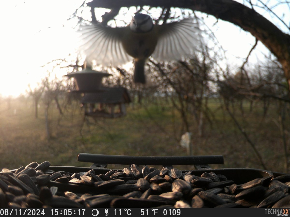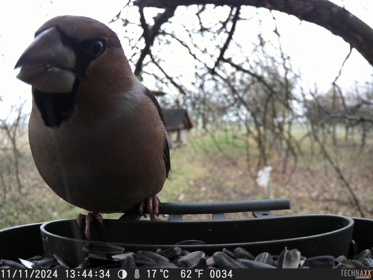 Letos krmíme už od konce září, nic moc nedozrálo a mají hlad. Létá jich letos mnohem víc než jiné roky. Pořídili jsem krmítko s foťákem, je to sranda, za 12hodin udělalo cca záběr 300ptáčků.