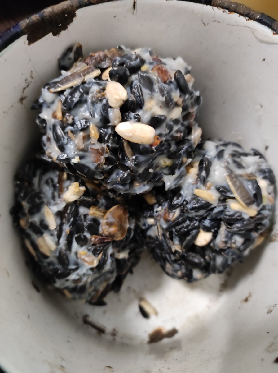 Včerejší domácí výroba koulí se semínky, rozpuštěné sádlo a do něj nasypaná semínka jakmile začne sádlo tuhnout uplácel jsem z něj tyto koule je něco vhodnějšího než obyčejné sádlo třeba nějaký jiný tuk?