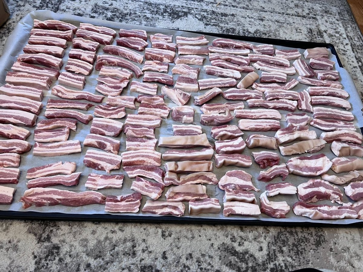 příprava svačinek pro psy na long trati (cca každé 2,5 hod) tady zrovna vepř. bůčky 😉