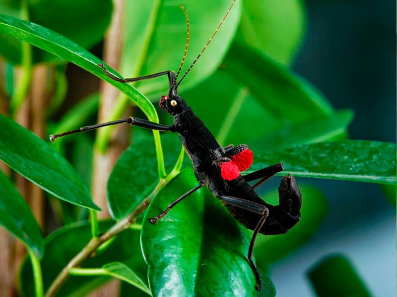 Je to strašilka australská, odchylka zbarvení označovaná jako lichen, a nejspíš je kvůli focení umístili na nějakou pokojovku atraktivní, nebude to jejich běžná potrava