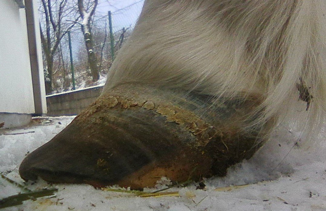 Kometo: chronické zchvácení je z minula, zrotované kopytní pouzdro se ještě nestihlo rehabilitovat(kopytní kost je pravděpodobné stále v dobré pozici ku dalším kostem nadprstí) , teď jde o laminitidu z nedostatku krevního zásobení, která je u IR a metabolicky náchylných koní v mrazech běžná, což zadavatelky poník je, prosím nastudujte si to, jaký managemet dále probíhá a mechanismus vzniku laminitidy.