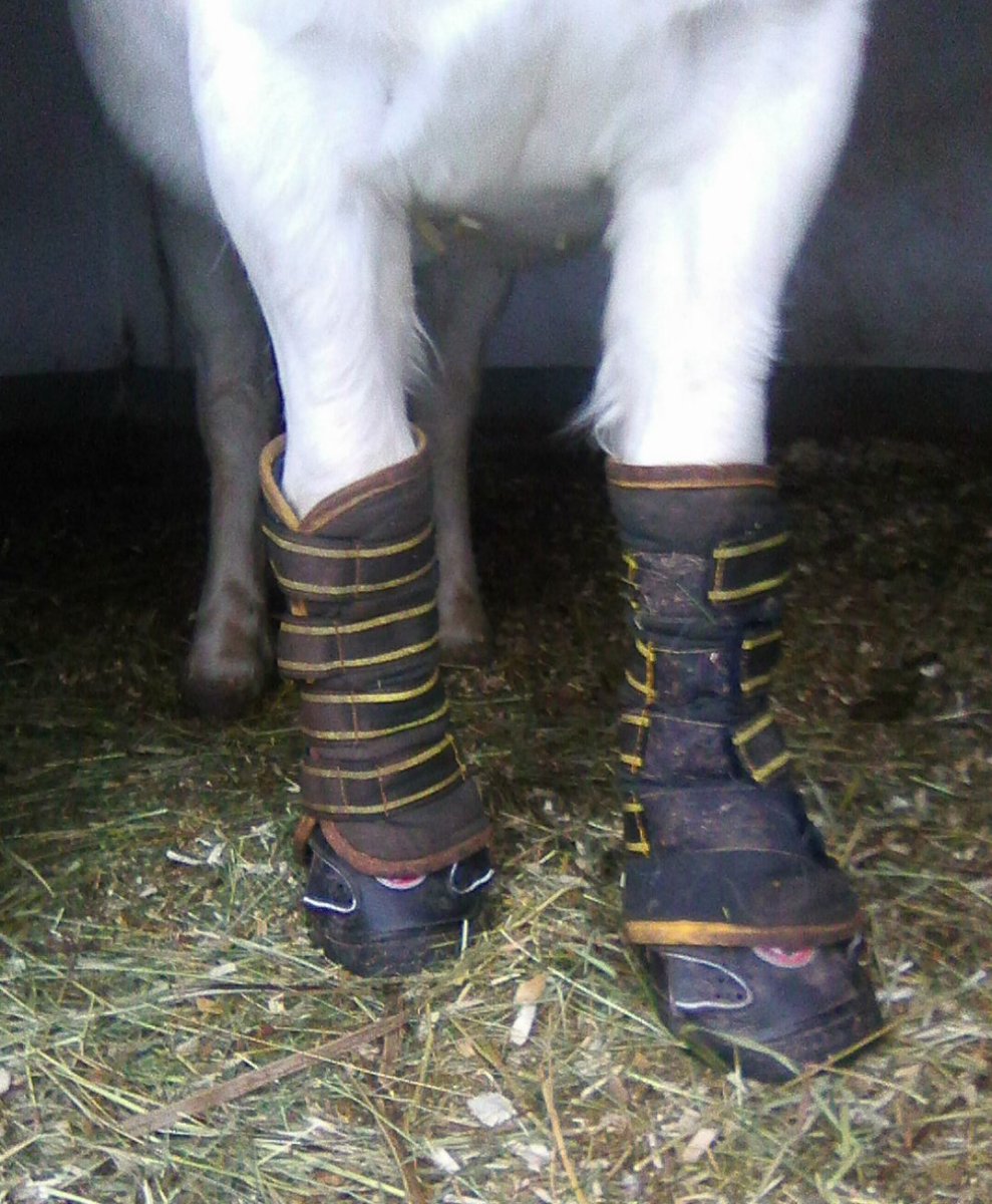 Co poníka teďka na těch nohách bolí, to ví bůh, analgetika asi nejsou od věci, ale je třeba řešit příčinu, protože sice dobré, že poníkovi ulevíte, a třeba se bude moci pohybovat, ale jestli se bude pohybovat na těchto kopytech, tak…