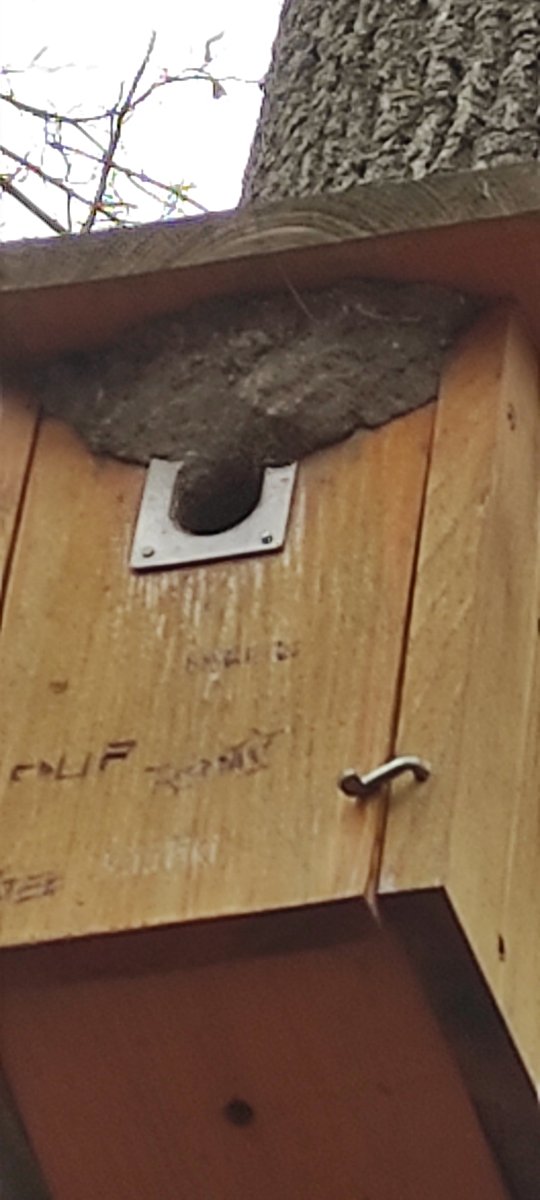 Anonymní:Brhlík lesní si takto upravuje vchod do budky aby větší zmenšil přesně na svoji potřebu ale na fotce to bláto vypadá prazvláštně asi nezkušený stavitel.