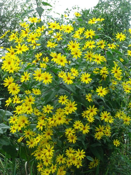 Statná vytrvalá slunečnice topinambur dorůstá do výšky až čtyř metrů, má drobnější žlutá květenství. Topinambury v závislosti na odrůdě kvetou až koncem léta a na podzim, poskytují pozdní pastvu včelám. Pěstování je snadné a mohou sloužit i jako kvetoucí pohledová clona. Nejvíce kvete odrůda Zlata. https://www.vubhb.cz/cs/clanky/topinambury