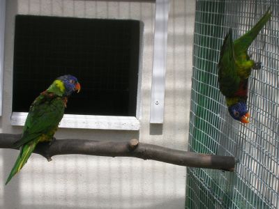 Chov jsem rozšířil o pár loriů mnohobarvých jižních. Jejich chováním jsem byl překvapen. Po vypuštění do voliéry prolezli celý strop a vše co ve voliéře bylo (houpačka ze dřeva, provaz apod.). Hned jak jsem dal loriům do vnitřní ubikace instantní směs (nektar), ovoce a medovou vodu bez váhání jako by o tom věděli, vletěli dovnitř hned na krmítka. Je radost je pozorovat jak skotačí po voliéře a vymýšlí různé lumpárny.