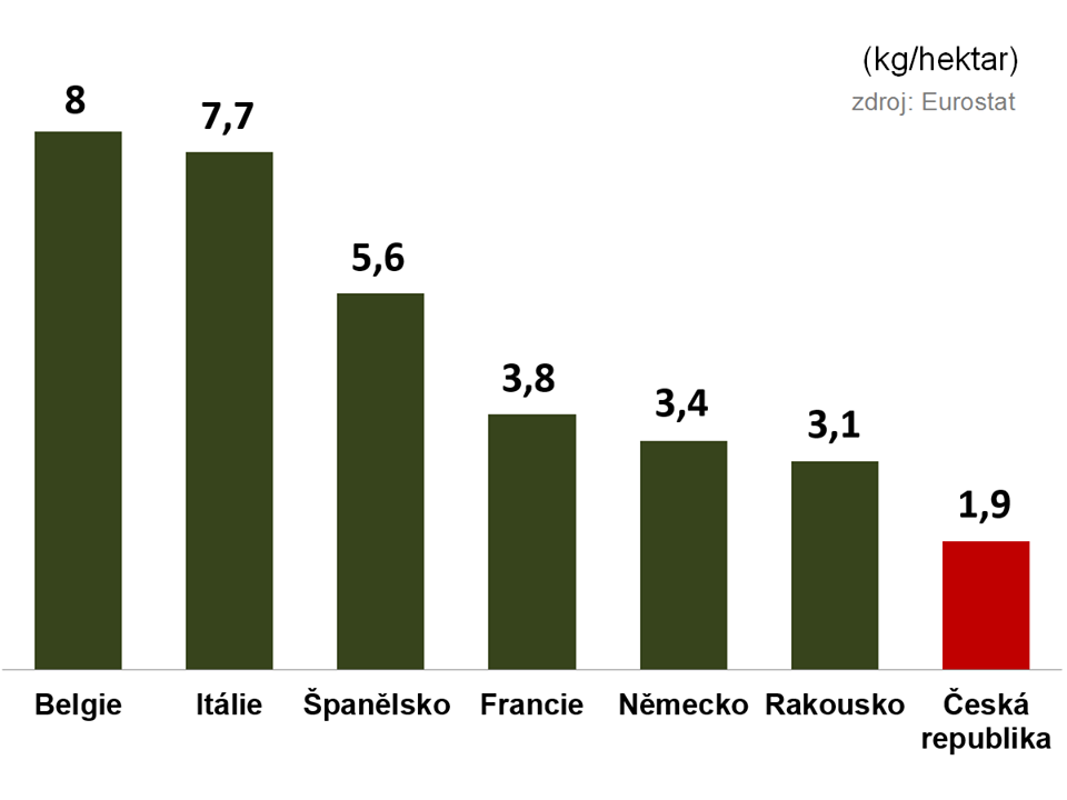 Škoda že v grafu chybí zmínka o spotřebě pesticidů na Maltě a Kypru, tam mají krásných 10kg/hektar.