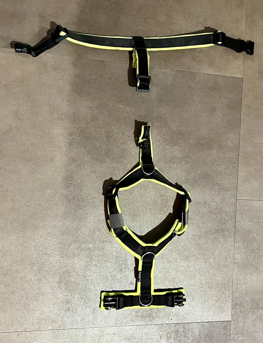 Kdysi jsem slyšela, že pes se dokáže z postroje vyvléci líp než z obojku ( moc jsem tomu nevěřila, koupila jsem postroj právě kvůli bezpečnějšímu udržení ). Nevím v jakém stavu jste ji našla. Ale není možné, že se z postroje částečně vysoukala a pak ho překousala ?