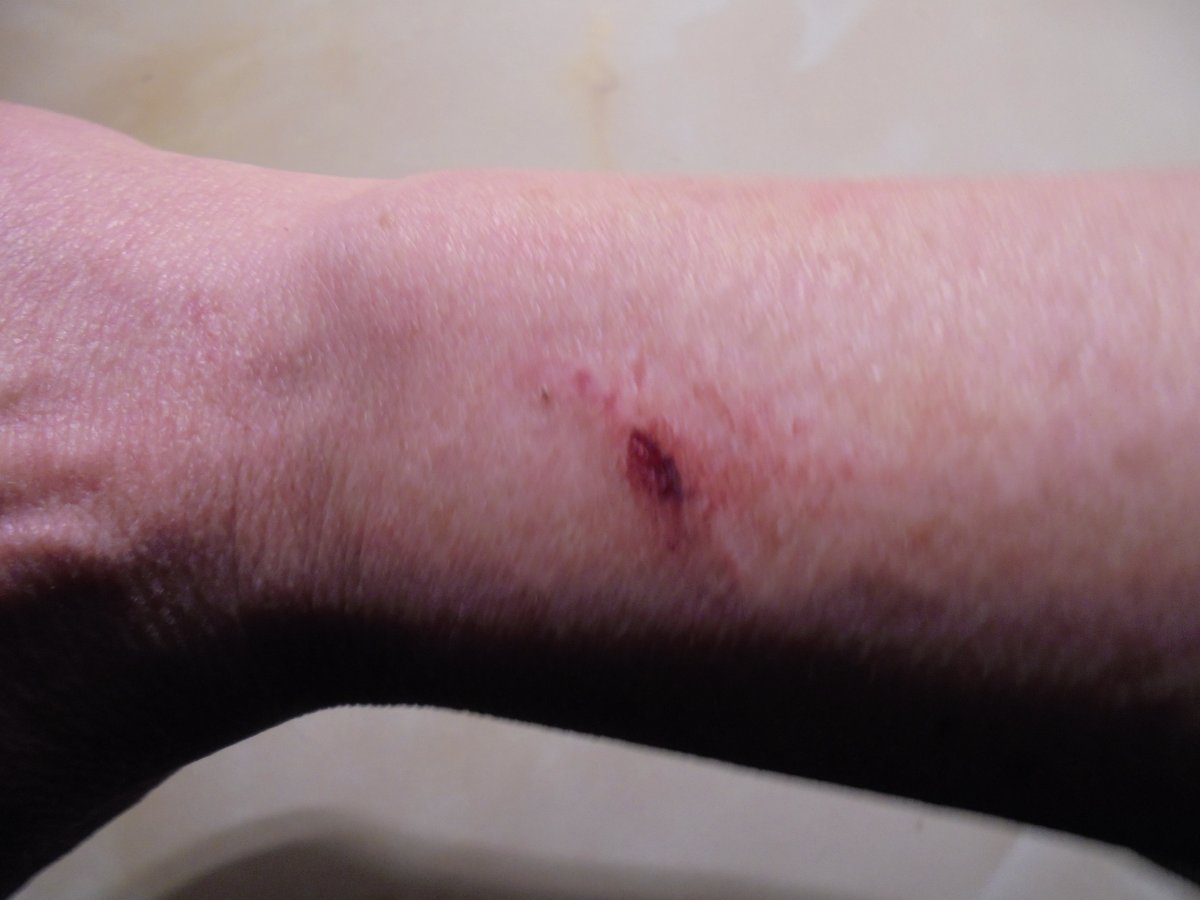 Od prvního dne to byl boj, nečekaný reakce na běžný věci (cokoliv v ruce = tvrdej útok do člověka, strachová agrese nejvyššího kalibru, přikládám foto díry v ruce, kterou mi udělal jehličkama coby pidimidi prcek, nebyla jsem dostatečně rychlá). Něco se přes den naučil, ráno jsme začínali od nuly, vymazanej software. Nulová motivace, neustálé hledání únikových zón odkudkoliv, agresivní výlevy na cizí psy při jejich míjení. Lidi má rád, ale neuměl s nima komunikovat, jakmile se rozjel, nechtěně ubližoval.