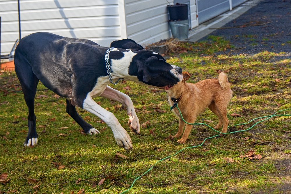 Uz se stihl poskorpit s Primem, pac zradlo, ale nejde natvrdo, spis vystipe za nejakou svoji nastavenou hranici osobniho prostoru. Povrkava si kdyz mu tam nejaky pes vleze, resp. povrkaval prvni den a zjistil, ze mu na to smecka prdi a i kdyz on je zkousi vystipat, neopetuji utok. A on fakt neni dementni, aby sel do likvidacniho utoku, uz jen proto ze jeste netusi jake jsou vazby a kdo koho brani, zato tusi se se svoji vahovou a vekovou kategorii to asi pripadne nevyhraje 😀