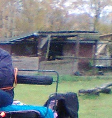O pár let později jsme přišli na to, že by bylo pěkné mít suché místo i před přístřeškem, takže jsme šoupli do země tři kůly, přeložili přes ně dlouhý čtvrtý kůl (měli jsme štěstí, že zrovna měnili elektrikáři sloupy v okolí, takže jsme získali mořené telegrafní nezničitelné), položili přes vodorovný kůl a stávající střech zákl. přístřešku nějaké hranoly a natloukli zase fošny. Na závěr jsme omlátili těch pár kůlů prkny a byla veranda, resp. třetí otevřený box. Tam už se dělal sklon s ohledem na to, abychom využili stávající okapové zařízení. Taky nám tu verandu ale dvakrát vítr podebral a převrátil na střechu, tralala. Teď už dlouho ne, trochu se upravilo upevnění, tak lepší.