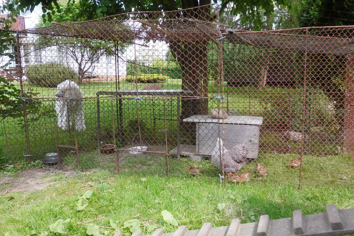 Dáma “ležící spící” je v popředí dvou posledních foto. Ještě pořád různě polehává, ale když se jí to hodí, tak i popoběhne. A jak jsem ji různě nosila a strkala k jídlu a vodě a vůbec, tak se mě, bestie, vůbec nebojí!