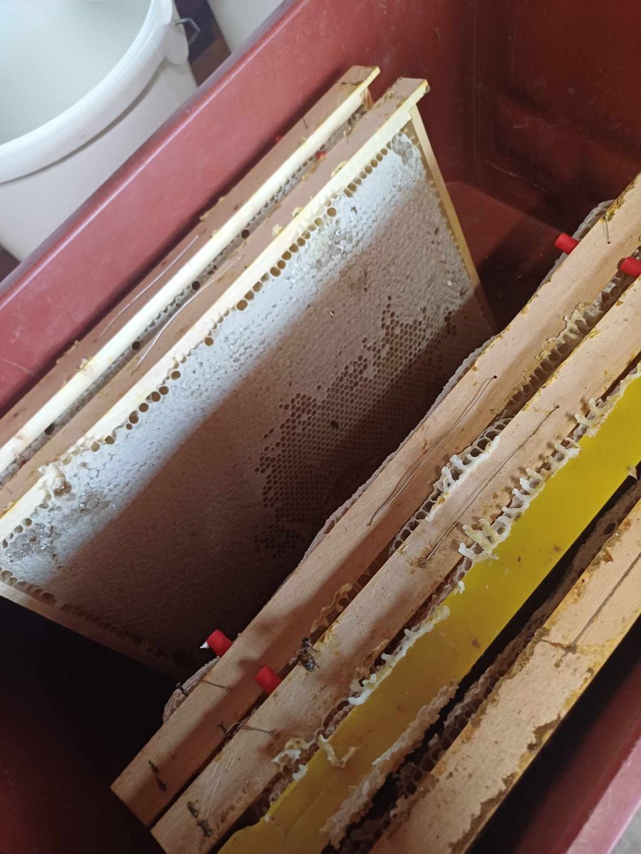 Já to ihned vracím do včel v domnění, že tím, že je to odvíčkované to vyberou, přepracují a zakomponují do nového medu. Ale při psaní mě napadá, někde to je už asi 10 a víc dní, že jsem se nepodíval, co s tím provedly. Neoznačil jsem si kam jsem to dal, vždy jen asi třetinu rámků v NN a tak vlastně nevím kam vlézt a nevím, které rámky v tom kterém nástavku to byly. Je to ale inspirace se na tpo zaměřit abychom věděli, co vlastně s těmito tuháči dělat když se to bude opakovat. Počasí se mění ve smyslu klimatické změny a tudíž se dá očekávat, že se tohle bude dít častěji. Já to nepamatuju a když budeme mít kliku, byl to extrém a nebude se opakovat.