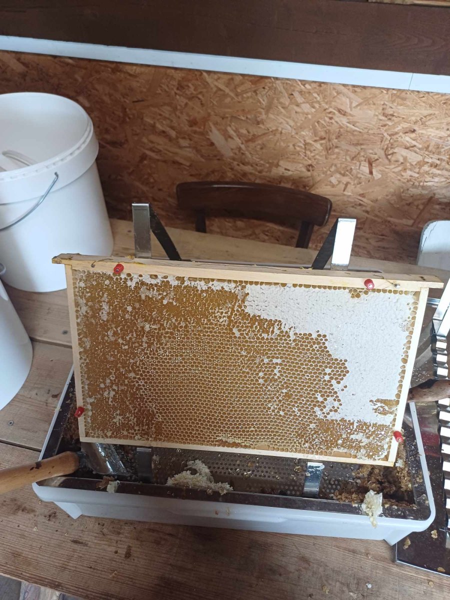 Letos je podivný rok, to jarní desetidenní ochlazení já patrně nepamatuju. Med, který stihly nanosit před ochlazením už byl prostě moc dlouho v úle a jarní med tuhne rychle. Řepkový dokonce za tři dny! Ale tohle řepka nebyla. Letos se jarní med choval jako medovice, nezavíčkovaný měl 17 a taky méně %. Prostě bylo potřeba vytáčet co nejdřív. Taky mám dost tuháče, jsou rámky komplet zazděné. U mě to ale nebyla třetina.