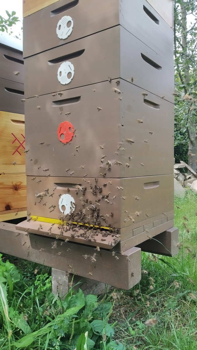 U nás bylo do rána velice chladno, ale přes den bylo pěkně a svítilo (teď je 15°C). Včely nosí mnoho pylu a asi je i nějaká snůška. Pracoval jsem dnes z domu, tak jsem občas zašel na zahradu a takto bláznily kolem poledne. Netuším co kde mají, o víkendu jsem prošel okolí a nikde jsem včely neviděl. Jen v jednom lese, kde jsem narazil asi na 10 jedlí (jinak tu jedle moc nejsou) to trošku hučelo. Dnes jsem dal gabon, troje z pěti nemají KK ještě zdaleka plnou, tak jim asi zítra dám ještě po pěti kg. V plodišti mají všechny zásob hodně (možná až moc) i mnoho pylu.