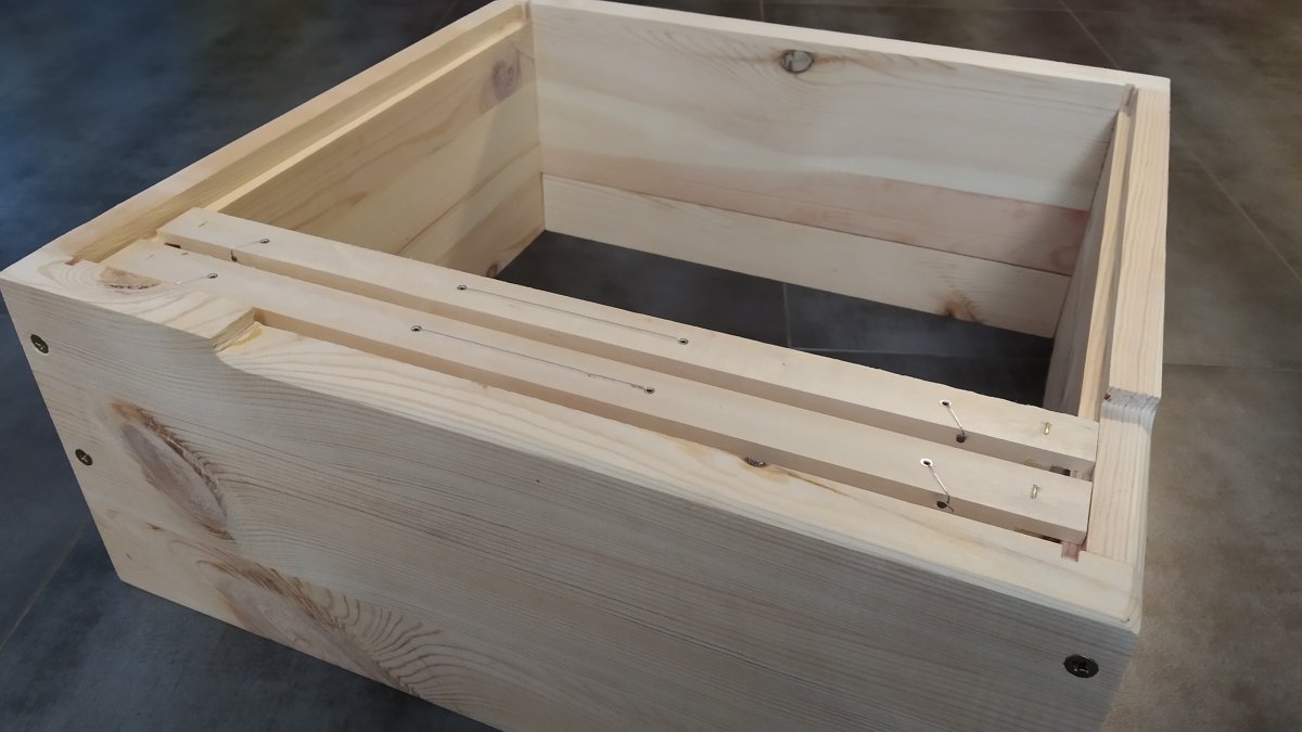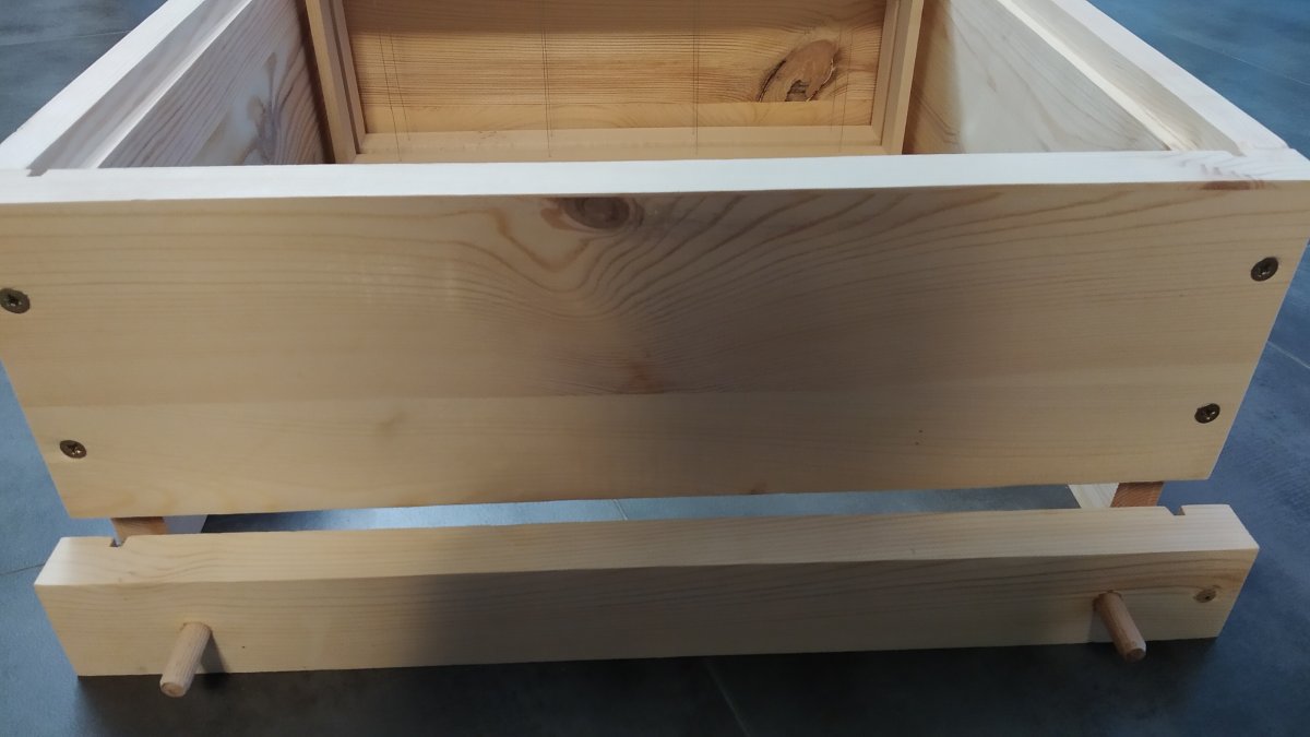 Tehdy jsem si tedy řekl, že když už má pan autor dna vysoká 100 a rozplýval se ve Včelařství, jak by bylo skvělé mít je vysoká 120 mm, tak já si řek, že proč ne rovnou 150 mm? A proč drahé dno a co když se neosvědčí? Nechci u ničeho a tudíž ani u včel, když to jenom trochu jde, žádné jednoúčelové věci. Tak jsem udělal dno s podmetem 18 mm a na něj běžný NN s plně rozběrným dílem a nikoli atypickým, ale běžnými nízkými rámky. Já žiji v novověku a rozhodně odmítám starověké nerozběrné dílo. Ovšem je doba, že lidé rozumu mdlého se v primitivizmu vidí a snaží se žít jak bosí domorodci v nejzaostalejších částech planety (nebo negramotní sedláci v době života kněze Varré). To rozhodně není a nebude můj případ.