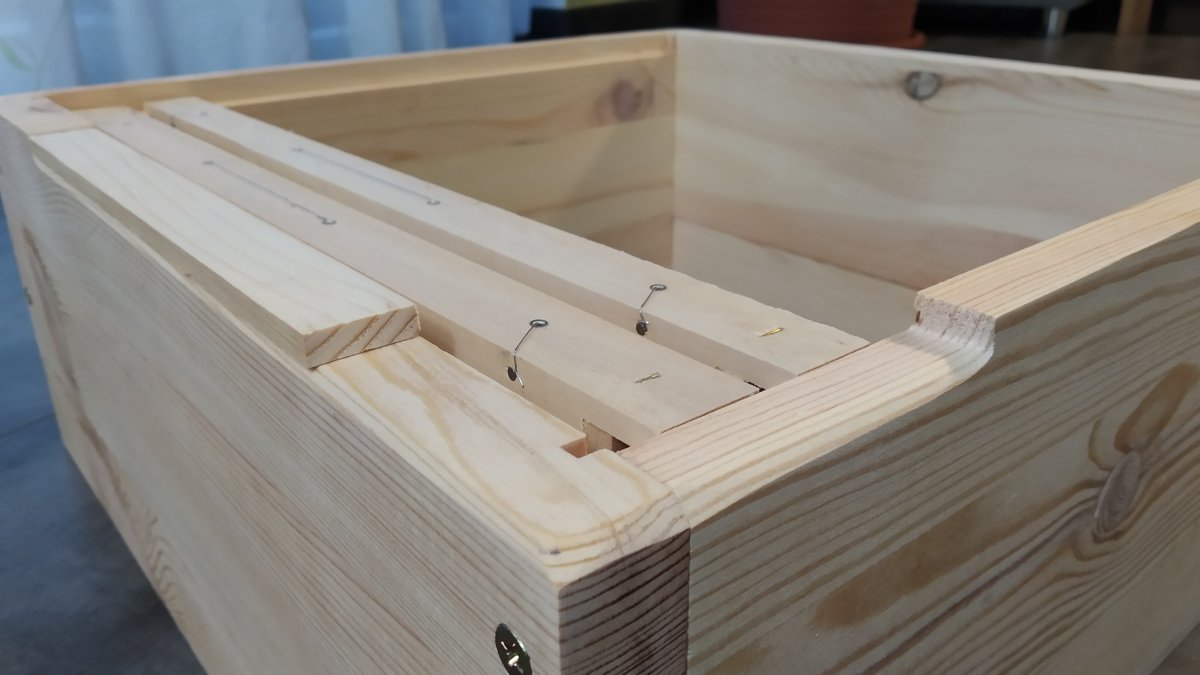 Taky nuta pro ouška hluboká 12 je pro mě málo. Tak je dle staré ČSN, kdy mělo mít ouško 5 mm a VM 6 mm a 1 mm tam byl jako vůle kvůli propolisu, kterým nuty zalepují. Ale ouško 5 mm rychle uhnije, kor u lípy (vejmutovka je ještě horší a nejhorší je osika). Tak jsem šel až na 7 mm a celou HL jsem snížil na 9 mm z normovaných 12. Bohatě to stačí. Jde mi o ušetření jedné operace při vlastní výrobě přířezů s osazením ouška. V té souvislosti připomenu, že nástavky byly původně pro rámek vysoký 14,4 a byly tedy vysoké 15 cm, VN rovných 30 cm, protože předkové měli VM mezi nástavky 6 mm. Když jsem přešel na 15 cm rámek, vše jsem zvyšoval o 6 mm. Jenže propolis, nepřesnosti, kroucení dřeva a tak se ukázalo, že je lepší dělat nové nástavky místo 15,6 15,7 a pak jsem dokonce přešel na 15,8.
