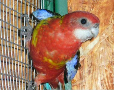 Je to asi 4 týdny co vylétla tato Rosela, má malý žlutý proužek na břiše.Myslíte že přepeří do červena? Nebo jde o nějakou mutaci. Je po červených rodičích. V hnízde byly ještě další 2 mladé ale ty nevydržely a byly žluté ještě více.