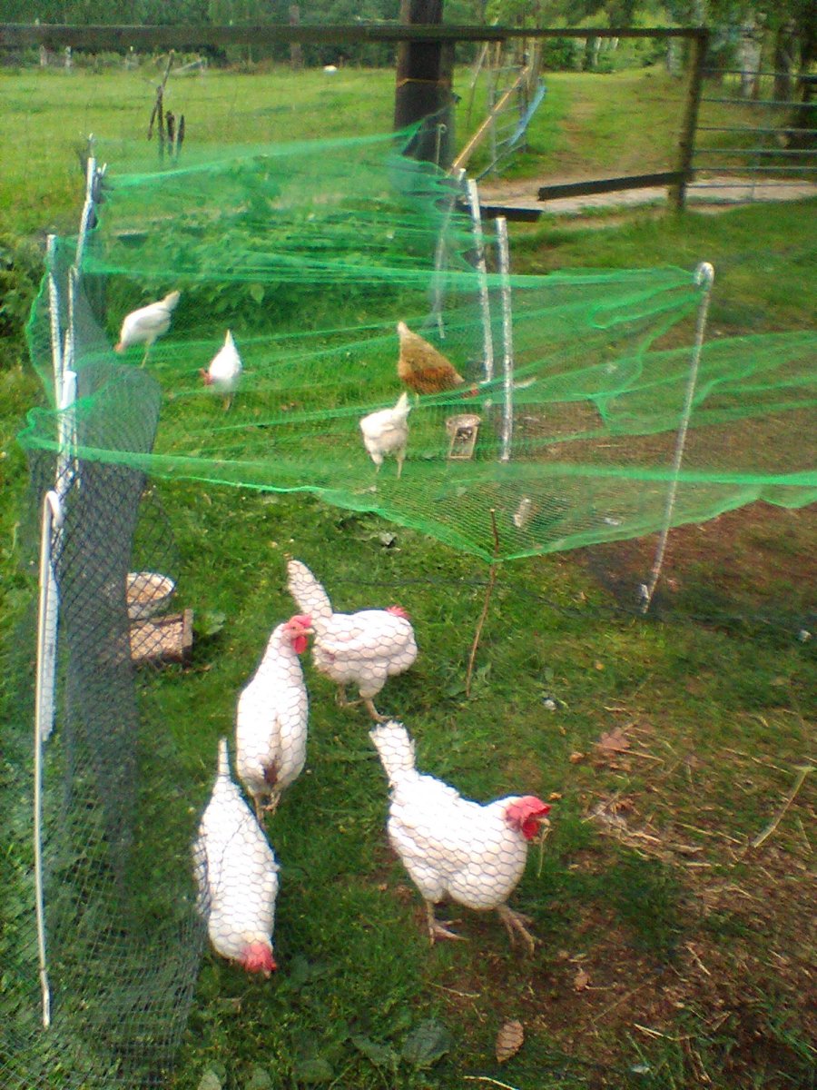 Tak jsem znervozněla, jak jsem posledně psala, že nemám pracovní výběžek pro slípky zasíťovaný. No a předevčírem jsem jim tam přes ten proužek taky natáhla síť 🙂 Tak to kmotra nebude mít tak zadáčo. Snad už ji přešla chuť, když mám od půlky května slípky v plném počtu!