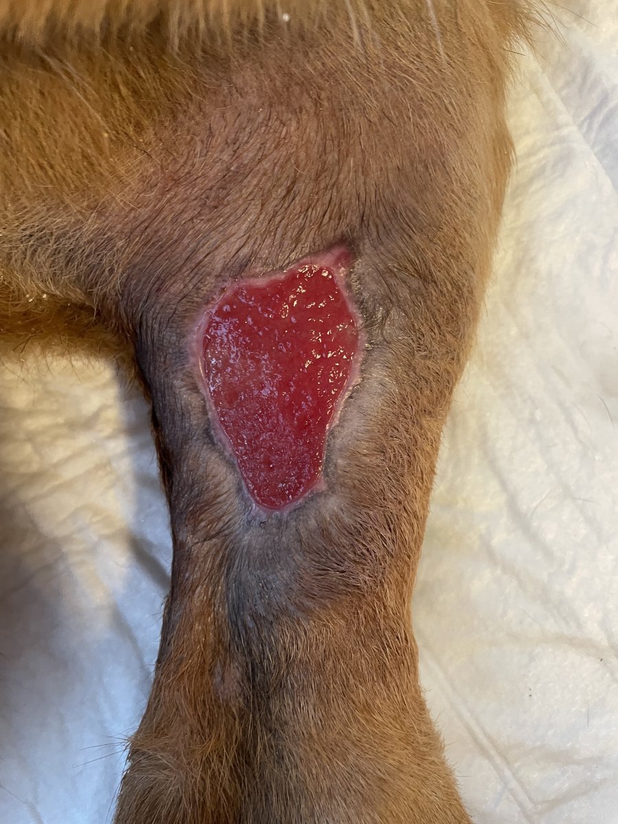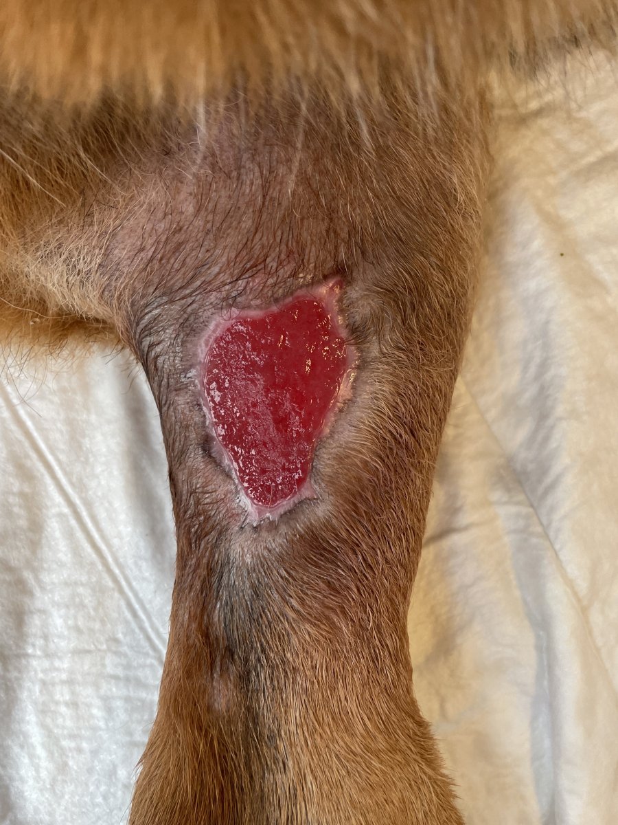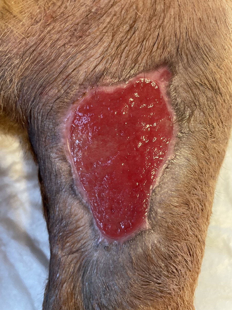 Edit: diky te tupce je krasne videt, jak rychle se rana zatahuje. Ma ted cca 7x4 cm (dle 5x5 cm kompresniho ctverecku)