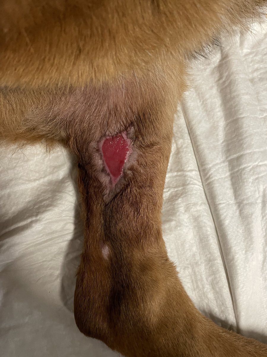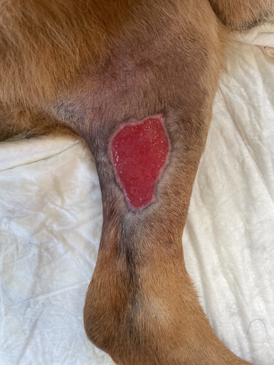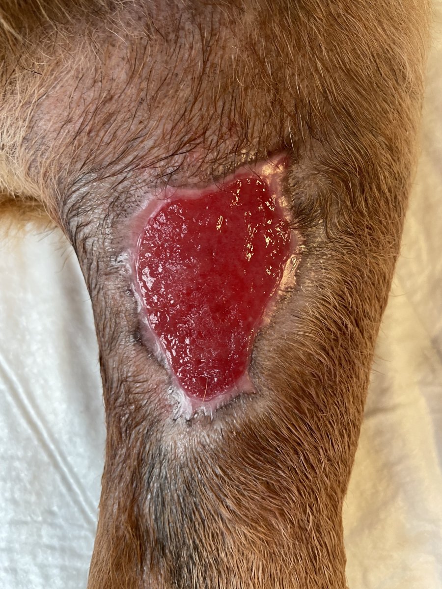 Edit: diky te tupce je krasne videt, jak rychle se rana zatahuje. Ma ted cca 7x4 cm (dle 5x5 cm kompresniho ctverecku)