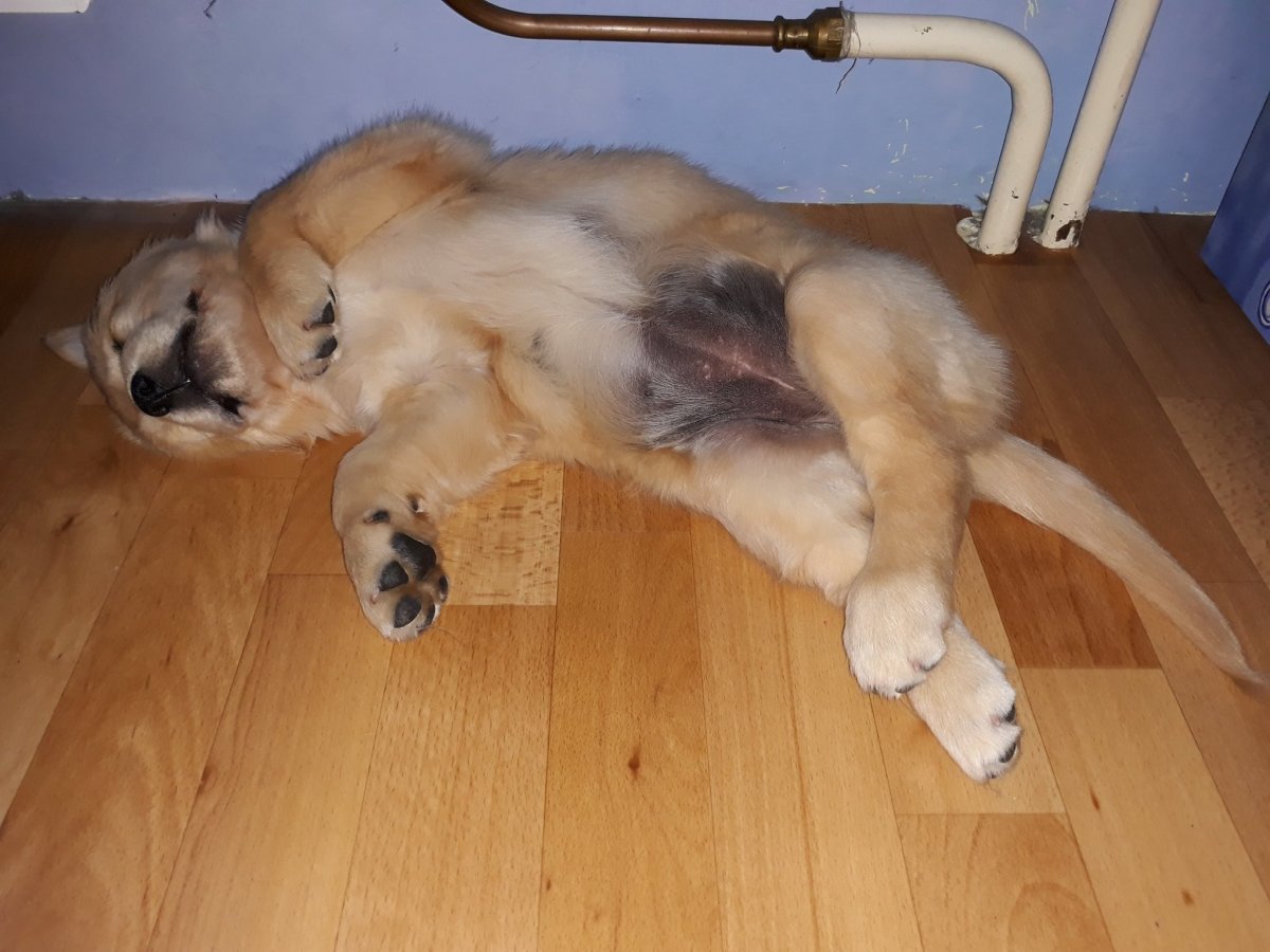 To určitě ne, takhle se určitě hojí hodně psíků 🙂, ještě asi v půlce hojení nabízeli, že by vzali kožní štěp, tedy odkrojili kousek kůže nad ránou a přetočili a všili do rány, ale nechtěla jsem další narkózu a díru vedle, když to hezky srůstalo.