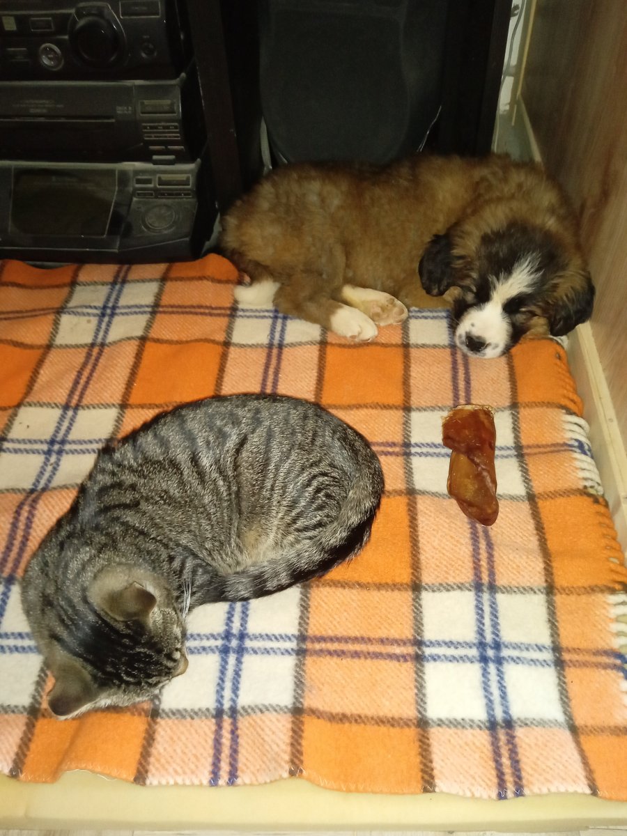 V zime naozaj niekto ukradol toho nášho kocúra … možno líška. Sme ho oplakali. To bol PÁN kocúr. Viac doma ako von - on si proste chodil ako chcel. Tak teraz máme novú mačku - a to je divočina. Ale napriek strachu čo s ňou spraví pes (cudzie mačky radikálne vyháňa) pochopil veľmi rýchlo, že toto je naše a rovnako ako kocúra už stráži aj toto treštidlo (ale to bude asi fakt len vonkajšia verzia - napriek trom týždňom doma). Testovala som to zrovna predvčerom - večer sa pes pýtal von - mača na schodoch. Tak som psa pustila a cez okienko na dverách pozorovala - pes ju doslovne prekročil - a ľahol na rohožku - mača si ľahlo o schodík nižšie. Tak som si v podstate vydýchla - bude to snáď už ok