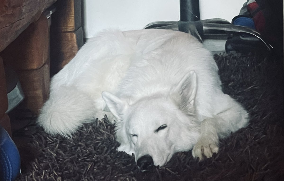 No a pak je tu Johana, kavalirka, kastrovana ve trech letech. Ona mela cuchaci srst uz od stenete, ale po kastraci teda extrem. Srst ji zhoustla a zjemnila, roste asi 100x rychleji. Clovek ji ucese, ona sleze z gauce, dojde se napit a je zase samej dred. A v zhledem k faktu ze je intenzivne presvedcena ze je to pes lovecky a vymete venku kazde krovi, ma nohy nakratko, usi dohola, podvozek s vetranim a vsechno co slo zkraceno na rozumnou delku. I tak si zvlada vyrobit dredy na 1,5 cm dlouhe srsti.