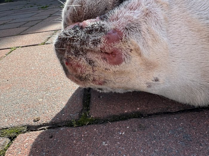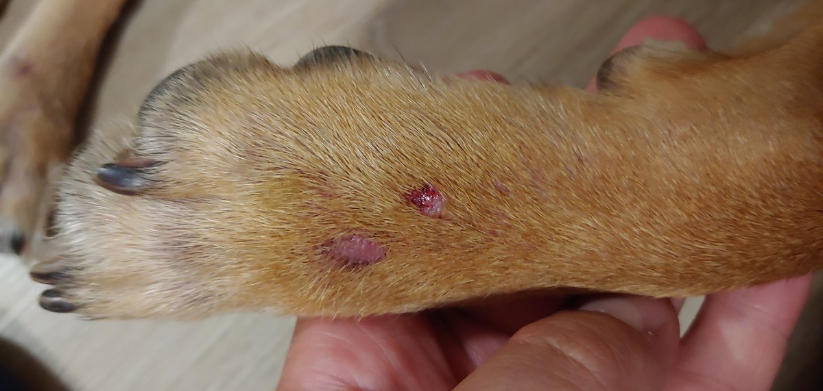Pridam se do tematu s cimsi na tlapkach. Muze to byt z alergie? Dost si to lize, asi ho to svedi. Ma to na predni a zadni tlapce.