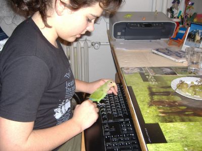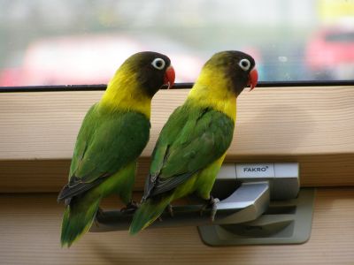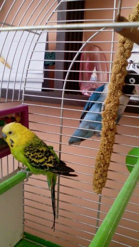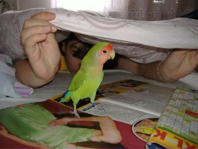 Mám Agapornise, dozvěděl jsem se že má asi už 3 roky, koupil jsem ho ve zveráči :) zvykl si doletí na povel, tam kde mu ukážu, ale ruky se bojí, nakrmit se nechá z ruky, ale pohladit ne.. Jinač přikladám fotku jak krade Andulce proso :D Jmenuje se BlueBerry, (říkám mu Berry, Berynka, když zlobí tak Berrynus ) :-D ..Ale mám otázku, je něco na to jeho ranní řvaní? :D