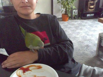 ..mnisek je velmi hlucny a svojsky vtacik, velmi rad sa predvadza, je velmi zivy, ucenlivy, dokaze sa rychlo naucit rôzne zvuky a dokonale ich opakuje a je aj vyborny strazca..