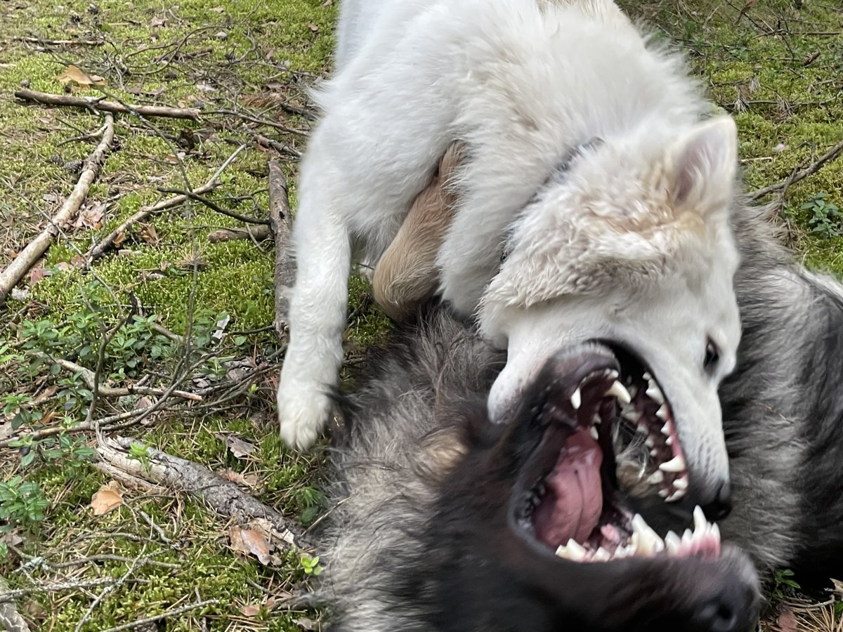 Přestože jsem cca do roka a půl hodně socializovala, pořád ho někam vozila atd., tak reaktivita na psy mu zůstala. Tak jsem o to víc cvičila. Aktuální stav je, že pokud by k nám cizí pes běžel, má to asi spočítaný. Nicméně pes 100m od nás, pokud je v klidu, nezkazí moc pěkné přivolání které má. Dokonce se mi stalo, že jedna fena v podrostu vyhmátla člověka se psem, řvala tam, Dráček se za nimi rozběhl…a stejně jsem ho odvolala. Na tohle jsem opravdu dbala hned od mala. Ovšem pokud by se něco dělo někomu ze psů nebo z rodiny, tak ho asi nic nezastaví. Jsme denně v lese, chodí na volno s mojí maximální pozorností.